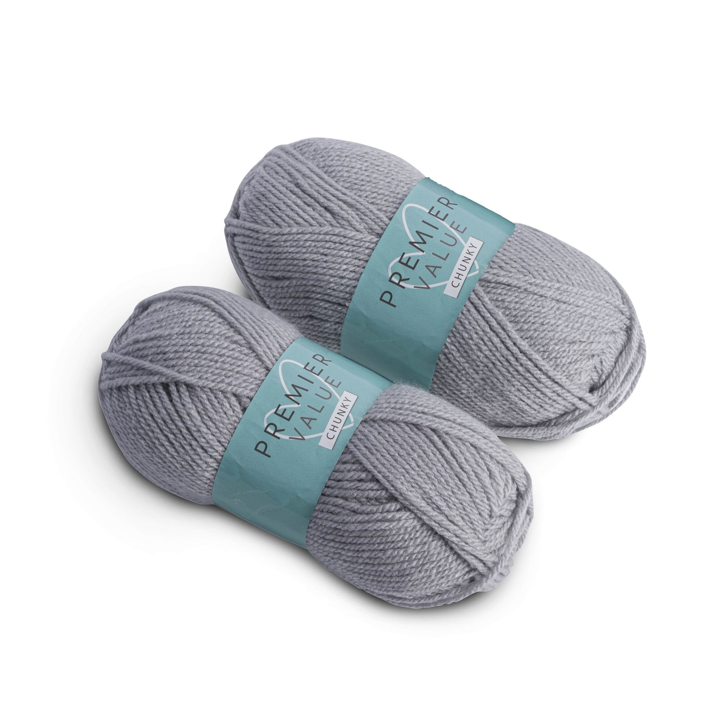 Premier Value Chunky - Yarn Knitting Wool Pack of 2 Acrylic (2x100g) - Grey