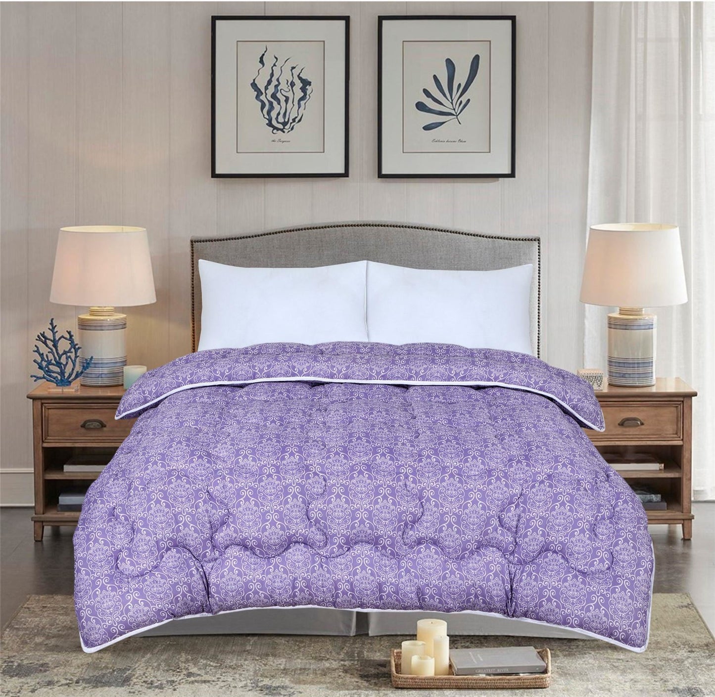 Soft Touch Coverless Microfibre Ultimate Comfort Duvet Quilt 10.5 Tog - Purple Damask